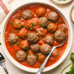 These gluten-free meatballs are moist, flavorful, and easy to make in 30 minutes! They’re a versatile meal that can be served in so many ways.