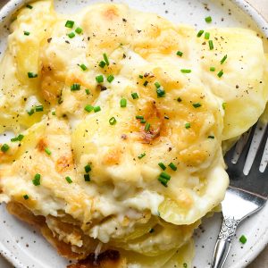 Because let’s be honest, there’s no reason not to love scalloped potatoes. A lusciously creamy & flavorful homemade sauce is poured over buttery potatoes, then baked to bubbly perfection.