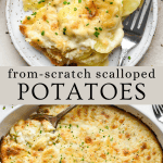 Scalloped potatoes are a delicious, comforting side dish. Potatoes are sliced thin, layered with onion and baked in a homemade cream sauce. Learn how to make scalloped potatoes from scratch to serve at your holiday gatherings!