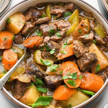 Then, cook the beef barley soup on low for 7-8 hours (preferred) or high for 4 hours. Cook until beef is tender and the barley is fully cooked, checking it towards the end of cook time.