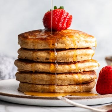 No. This recipe was specifically created using almond flour so I don’t recommend substitutions. If you would like another pancake recipe using a different flour – try this best pancake recipe, buttermilk pancakes, whole wheat pancakes, or Greek yogurt pancakes.