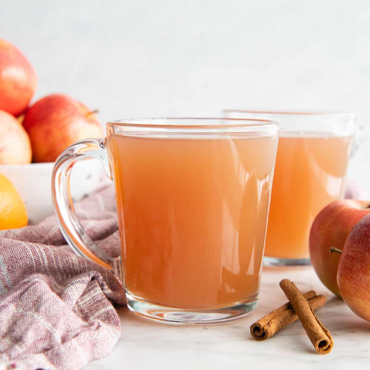 One thing I love about this recipe is that it’s a great way to “clear the fruit drawer!” Have some apples that are past their prime? Turn them into delicious apple cider! Or try these apple pie bars or apple cake – yum!
