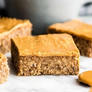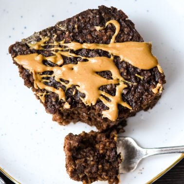 The top should be slightly firm when the breakfast bars are removed from the oven. Since all ovens are different your baking time may vary slightly. However, it is important that the top isn’t mushy and that you can spread peanut butter around on it without it becoming a mess!