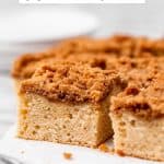 This cinnamon coffee cake is moist and buttery with a delicious cinnamon crumb topping. This coffee cake recipe easy to make and is a delicious special treat to serve for breakfast or brunch!