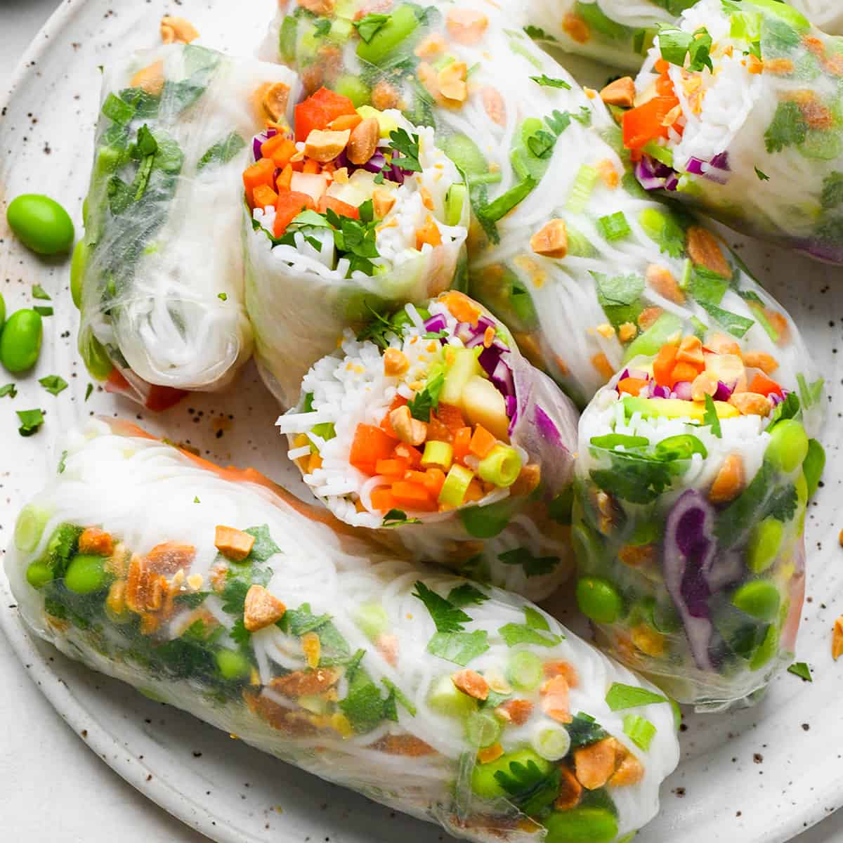 What’s not to love? Your favorite veggies, fresh cilantro, green onions and peanuts are all rolled up tight in a spring roll wrapper then dipped in the most delicious peanut sauce!