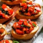 This bruschetta recipe is easy to make, the most time-consuming part is chopping the ingredients. We’ll walk through how to make bruschetta step-by-step, and don’t forget to watch the video.