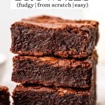 This is the best brownie recipe ever! These fudgy brownies are homemade from scratch and have a gorgeous crinkly top with a fugdy center. They’re easy to make with only 7 ingredients! Ditch the box and make these homemade brownies today.