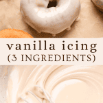 This homemade vanilla icing recipe is easy to make in under 5 minutes with only 3 ingredients. This vanilla glaze hardens well with a beautiful shine, and tastes delicious on top of donuts, cookies, cakes, etc.