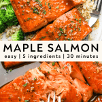 This easy maple salmon recipe is easy to make with 5 ingredients! Maple glazed salmon is a nutritious, kid-approved salmon recipe your whole family will love.