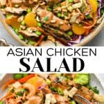 In this Asian chicken salad recipe, colorful veggies, marinated chicken and lettuce are tossed in a delicious homemade dressing. It’s bursting with flavor and so much more delicious than any restaurant salad!