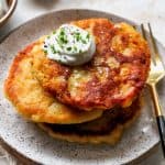 One day, the craving for potato pancakes struck me and I couldn’t shake it. So I scoured the internet to try to find a recipe for potato pancakes that didn’t require leftover mashed potatoes, and had no luck!