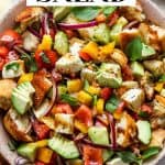 There are many warm summer nights when we enjoy this panzanela salad as an entire meal. It’s also a spectacular side dish to serve with your favorite grilling recipes (like chicken satay, flank steak, etc.) or a bowl of fresh pesto pasta or pasta primavera.