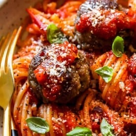 The most delicious Italian Recipes on the web that are family friendly and easy to make. Try this pesto pasta, homemade meatball recipe, bright and lemony pasta primavera, make your own basil pesto sauce, homemade pizza dough and pizza sauce, and so much more!