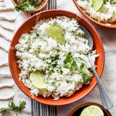 - Rice. choose your favorite – white rice, cilantro lime rice, Mexican rice, brown rice, etc.