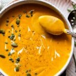 This soup will never make it to the freezer – it’ll be gone way before we get to thinking about freezing it! Followed recipe to the letter and will soooo make this again but will cut back on the maple syrup which I presume we add the same time we add the cream and apple cider vinegar. 1/4 cup is a little to sweet for us but it is one delicious soup! Thank you ☺️
