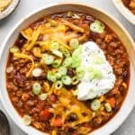 If you don’t gobble this easy chili recipe up in one sitting, then it can be stored in an airtight container in the refrigerator for 5 days. You can also freeze this beef chili for up to 2 months in an airtight, freezer-friendly container.