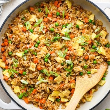 I have used firm tofu! Just dice it small and cook it first until it’s crispy!