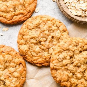 This is the best oatmeal cookie recipe ever. These oatmeal cookies are buttery and perfectly sweet with crispy edges & soft and chewy centers. They’re easy to make – no chilling required. Add your favorite mix-ins to make them your own!