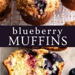 This blueberry muffin recipe yields moist, buttery homemade blueberry muffins with a perfect texture that are loaded with fresh blueberries and topped with a crumb topping. They’re easy to make in only 30 minutes and no mixer required!