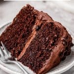 You can double the recipe to make two, 9″ round cakes, if desired. We’ll walk through how to make chocolate cake step-by-step, and don’t forget to watch the video.