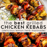 These lemon chicken kebabs are infused overnight with the best kebab marinade and grilled to perfection. This chicken kabob recipe is my go-to when we’re grilling for a crowd.