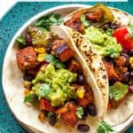 Taco night isn’t complete in my house without these black bean sweet potato tacos – I make them at least twice a month (along with this salsa, Mexican rice, guacamole, and refried beans)!