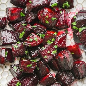 This Oven Roasted Beets recipe is my favorite way to prepare fresh beets. Roasting brings out their natural sweetness, which is enhanced by a drizzle honey and balsamic vinegar. Roasting beets also give them the best texture (not mushy like boiled beets).