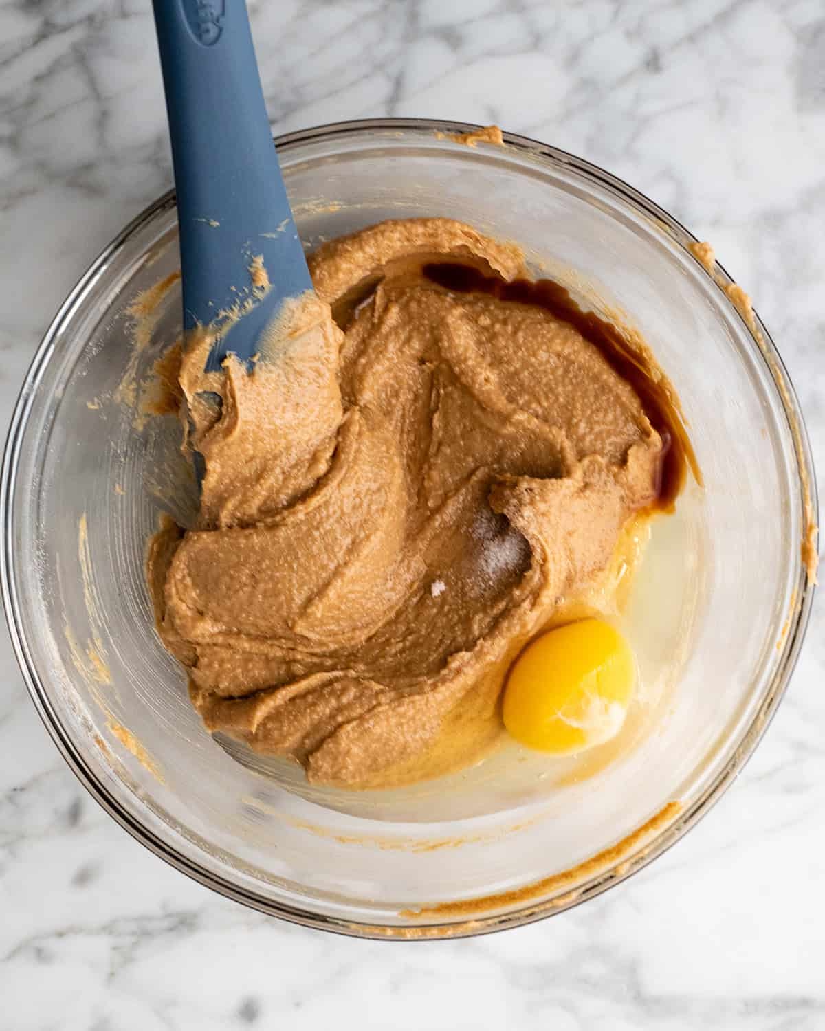 - Add egg, vanilla and salt and stir until combined.
