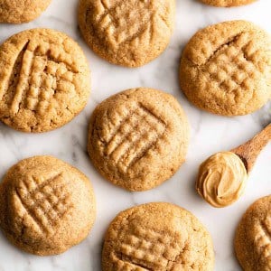 I recommend using a peanut butter that is solid at room temperature to make these gluten-free peanut butter cookies. Some natural varieties do meet this requirement and can be used. If you use a peanut butter that’s liquid at room temperature (like this homemade peanut butter), you will have to chill the dough for 60 minutes before baking.