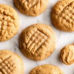 And, these flourless peanut butter cookies are naturally gluten-free, so you can make them for your friends who need to avoid flour! Also, try these gluten-free chocolate chip cookies, oat flour cookies, almond flour cookies, and no bake cookies for more gluten-free treats!