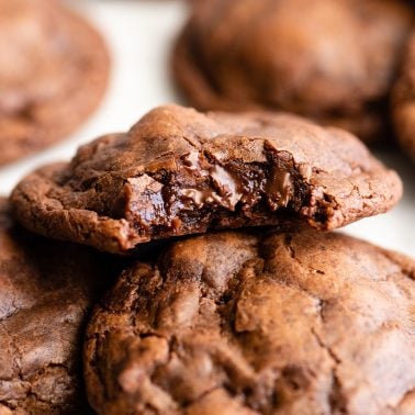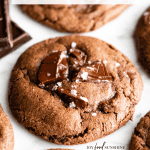 These chocolate cookies are adapted from our famous chocolate chip cookie recipe (with thousands of 5-star reviews). All I had to do was swap out some of the flour with cocoa powder, add some chopped chocolate on top and presto – you now have a fudgy chocolate cookies recipe that is just as good (or dare I say better) than our beloved classic chocolate chip cookies.